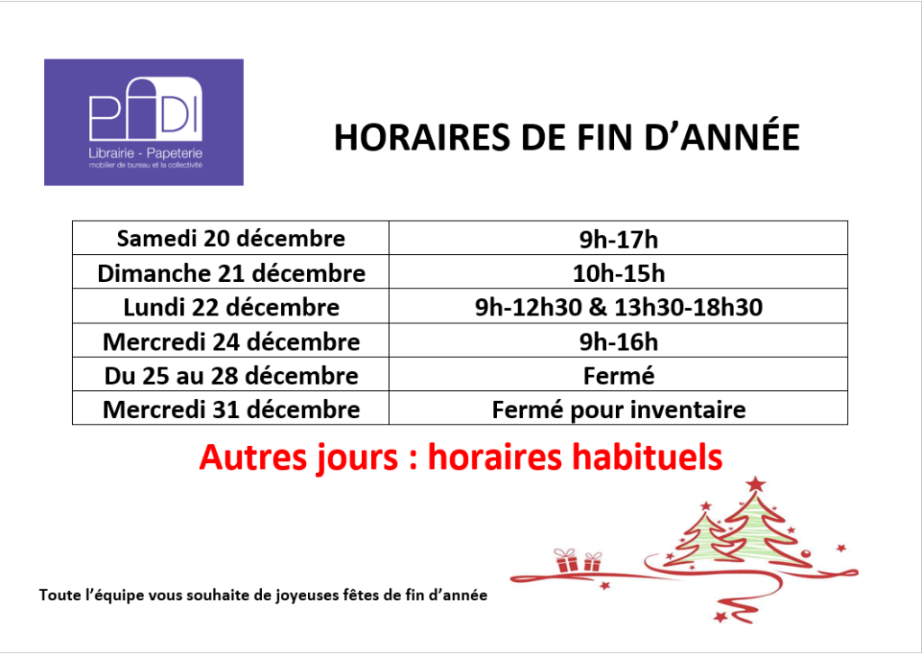 Mardi à vendredi : 9H – 12H30 & 13H30- 18H30