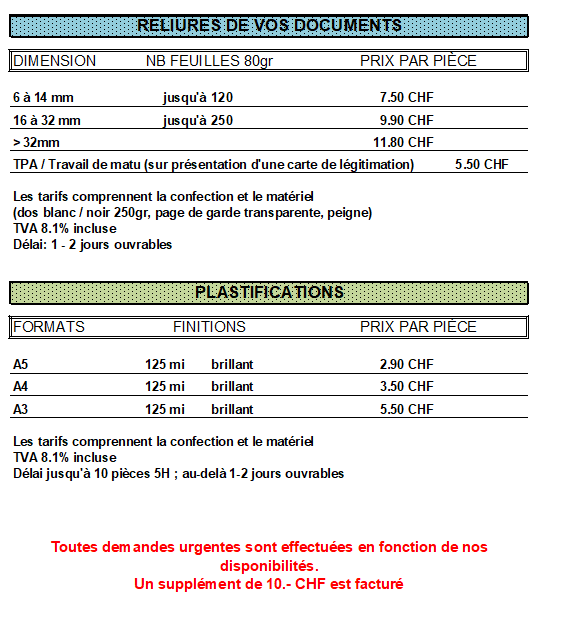 Impressions / Reliures / Plastification
